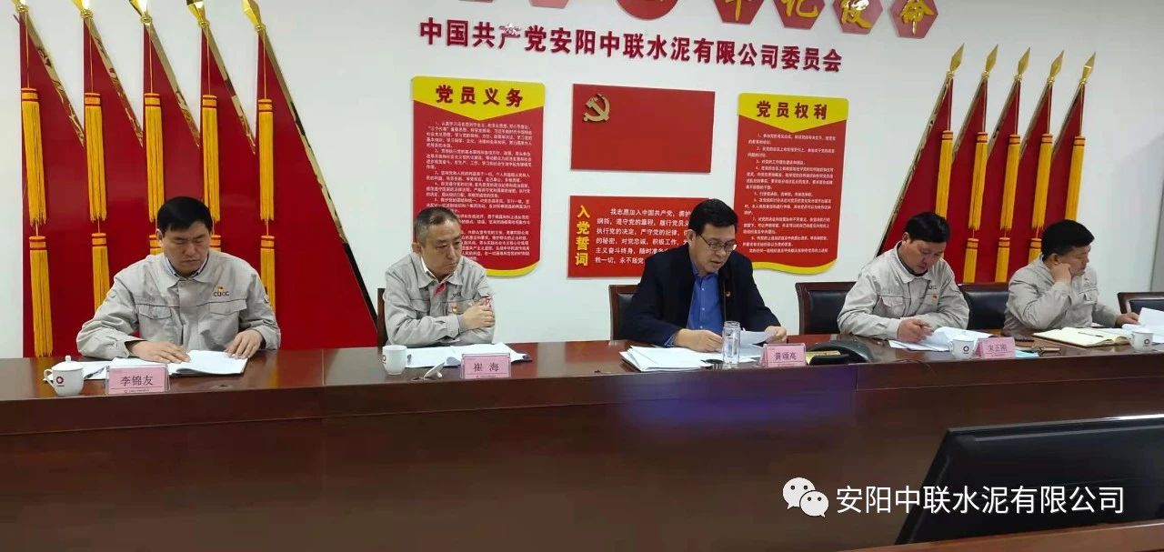 按照中国联合水泥党委关于认真开好2020年度民主生活会通知要求,2月24日上午,安阳太阳成集团tyc122cc入口2020年度党员领导班子民主生活会在公司党员活动室召开。中国建材股份党委常委、执行董事、副总裁,中国联合水泥党委书记、董事长崔星太通过视频连线督导会议并作点评讲话。中国联合水泥党群工作部主任侯萍、纪检监察室副主任董治及安阳太阳成集团tyc122cc入口党委委员、领导班子成员参加会议。安阳太阳成集团tyc122cc入口党委书记、总经理黄颂高主持会议。